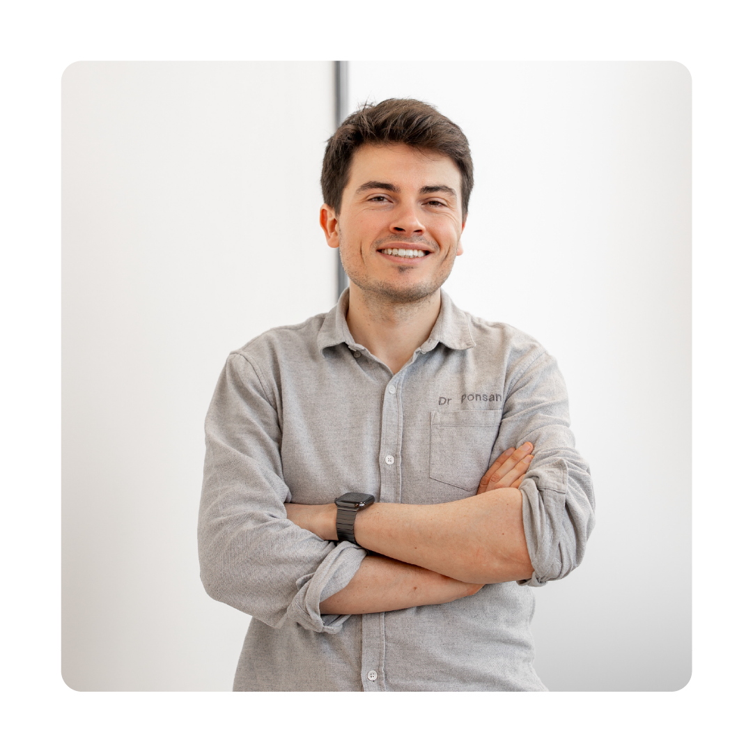 Le docteur Ponsan a réalisé ses études dentaires à la faculté de Toulouse avant de poursuivre son internat à Clermont-Ferrand pour trois années à temps plein en milieu hospitalier, marqué par une pratique clinique complète et la gestion de nombreux cas complexes, chez l’enfant comme chez l’adulte.