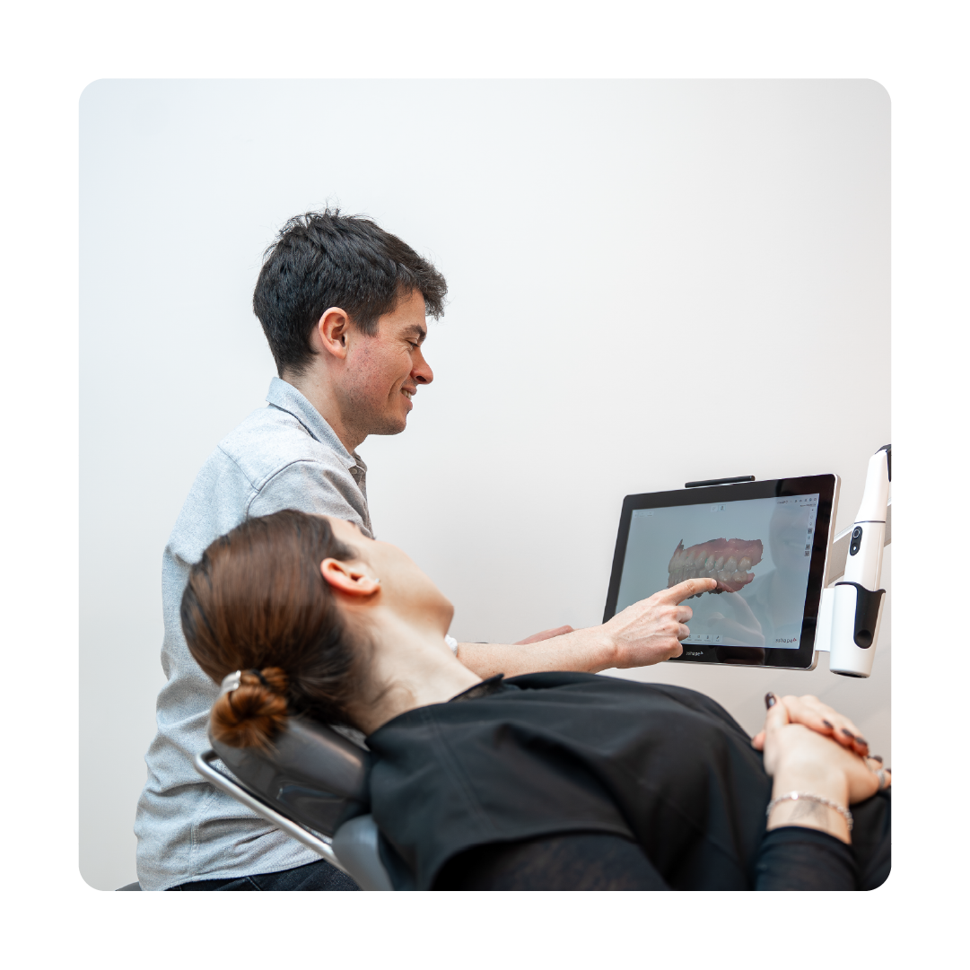Le scanner intra-oral remplace les empreintes classiques par un scan 3D ultra-précis, rapide et non invasif.
